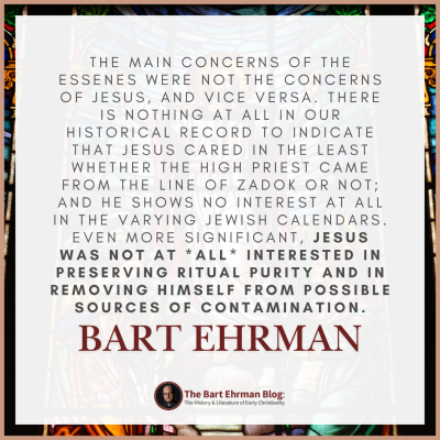 Bart argues that while the Dead Sea Scrolls are crucial for understanding the Jewish world of Jesus, Jesus himself was almost certainly not a member of the Essene (Qumran) community.