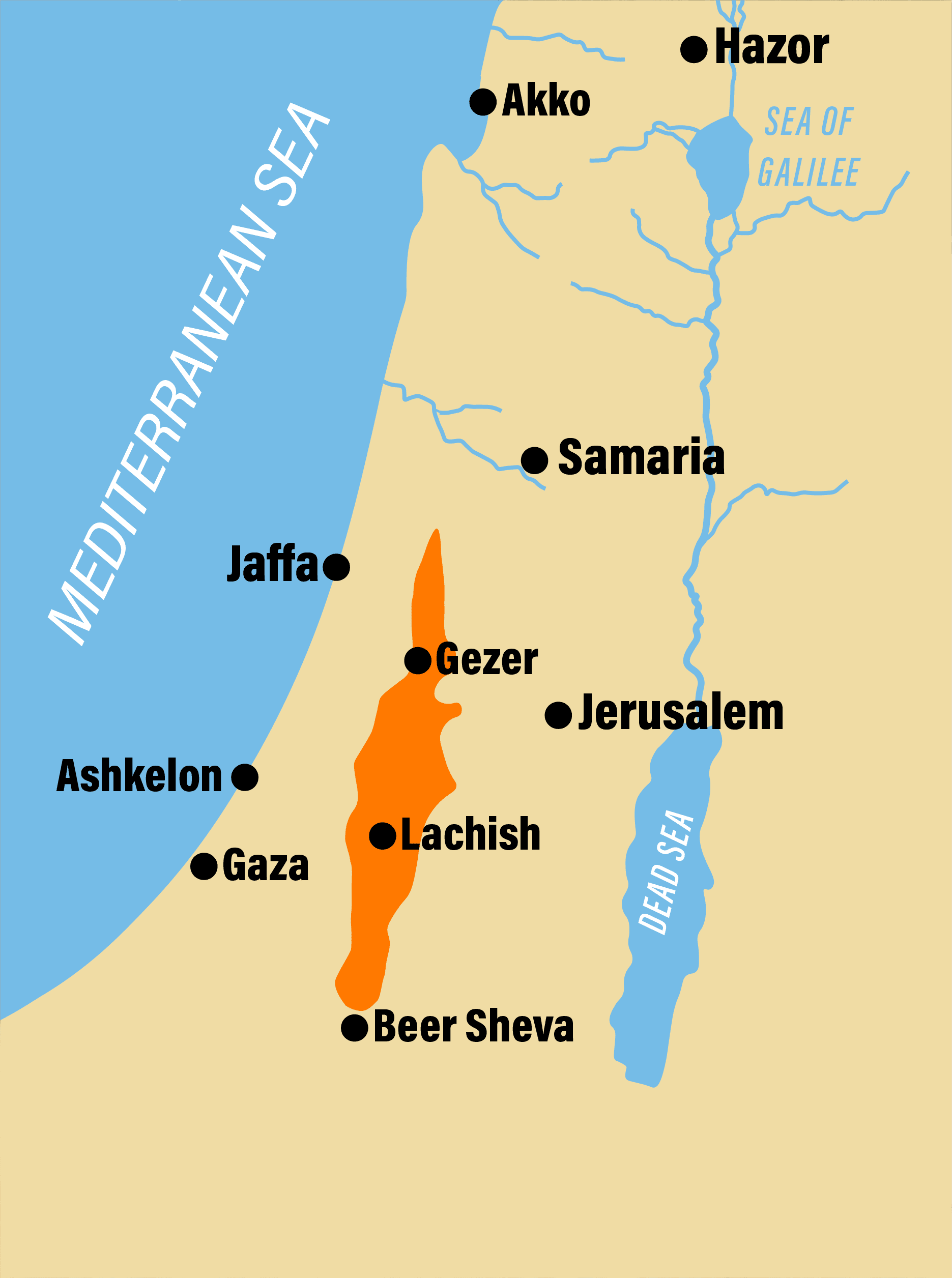 Lochish is a large city fortified with walls. Immediately north of Lochish is Moresheth, which, you remember, that’s where Micah comes from. That’s where he lives, next to the second largest City in Judah.